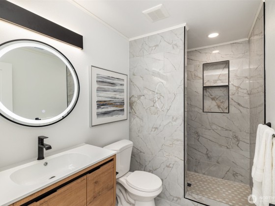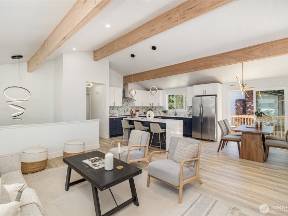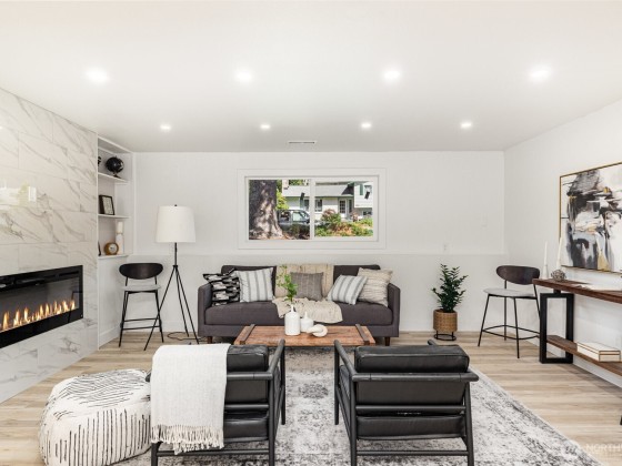 Discover elegance in Aced Home's newest custom Kirkland residence, 2,440 sqft gem on corner lot. 5-bedroom, 3-bathroom home boasts hand-picked finishes and an open-concept design. The chef’s kitchen features custom cabinets, stainless appliances, quartz counters, and a prep island, ideal for entertaining. A second kitchen in the basement supports multi-generational living. The living area, w/ vaulted ceilings and a fireplace, opens to a deck and patio, enhancing outdoor living. The primary suite is a luxurious retreat, with three spa-inspired bathrooms. The basement, with its kitchen and fireplace, suits gatherings. Includes Dedicated laundry w/ dog wash, W/D hookups, and a two-car garage. Near I-405, I-90, parks, and downtown Kirkland.