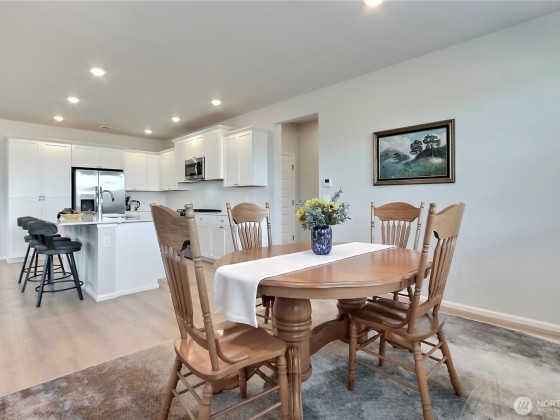 Welcome to this elegant Richland model by Lennar located in the serene community of Daybreak. This meticulously designed rambler features a spacious great room, an impressive owner's suite with a luxurious 5-piece ensuite, and an open kitchen ideal for culinary enthusiasts with room to entertain. Additional highlights include a 2-car garage, sprinkler system, an office, a covered front porch, and a back porch perfect for enjoying vibrant sunsets and local wildlife, on a shy 1/3 acre private, fully fenced, premium lot. Situated close to parks and walking trails, with easy access to historic Orting and Puyallup for modern conveniences like shopping, dining, and healthcare. Experience a tranquil lifestyle in thoughtfully planned surroundings.