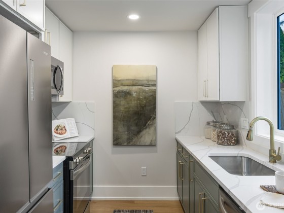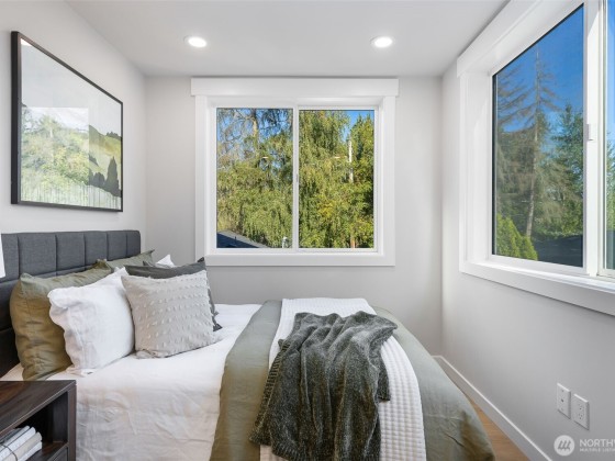Organic Luxe: High-end design and finishes define this modern 3BR/2BA home in Crown Hill. Highlights include wooden slat accents, custom bedroom molding, a designer kitchen with soft-close cabinets and stainless steel appliances, and a light-filled open floor plan with vaulted ceilings and west-facing windows. The spacious primary suite offers a private retreat, while the large yard extends living outdoors. Energy-efficient mini splits provide year-round comfort. Located near top-rated 9/8/7 schools with easy access to Ballard breweries, Green Lake, the zoo, markets, parks, and direct transit to Downtown and South Lake Union, this home blends style with convenience.