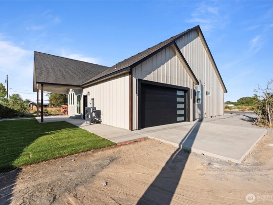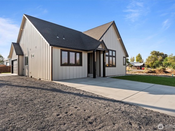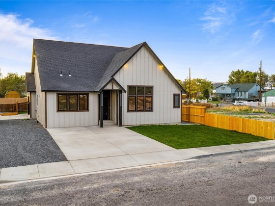 SELLER MAY PAY UP TO $10K IN CLOSING COSTS! A stunning 3-bedroom, 2-bath custom home by PDK Construction with over 1,700 sq. ft. of well-designed living space. The gourmet kitchen features quartz countertops, a matching backsplash, and sleek white-and-gold appliances. Enjoy LVP flooring, cathedral ceilings, and a convenient stackable washer/dryer. The primary suite stands out with wall slats, designer sconces, and a spa-inspired bath featuring a soaking tub, tiled shower with cobblestone flooring, rainfall shower head, lighted mirror, and walk-in closet. Outside, enjoy a covered patio, landscaped yard, RV parking, and a 2-car garage—just minutes from Soap Lake, shopping, and dining.