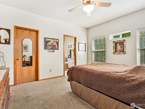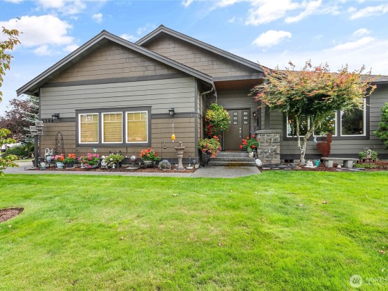Impeccably maintained one-level home in a highly desirable Ferndale neighborhood with a view of Mt Baker. Designed for comfort this residence features a spacious open kitchen with abundant storage, perfect for the home chef and ideal for entertaining. A generously sized primary suite offers a private retreat with a walk-in closet, soaking tub, and separate shower. Two additional bedrooms and a full bath provide plenty of space for guests. Outside, the fully fenced backyard and thoughtful landscaping create a private outdoor space ready for relaxing, entertaining or gardening. Storage shed built on a foundation. New Central Air system installed 3 years ago. Come see this one today!