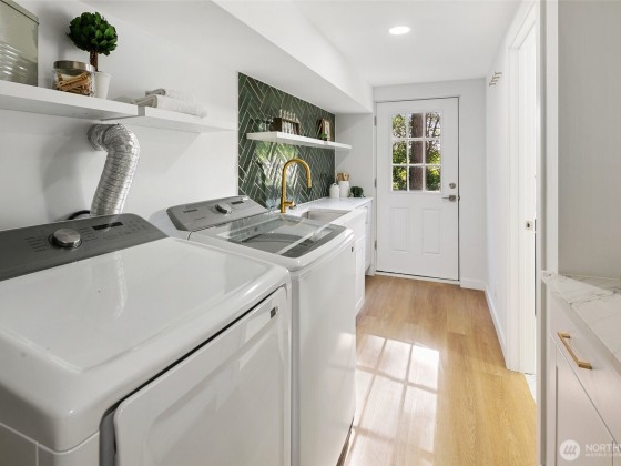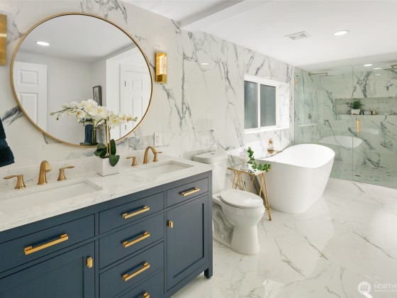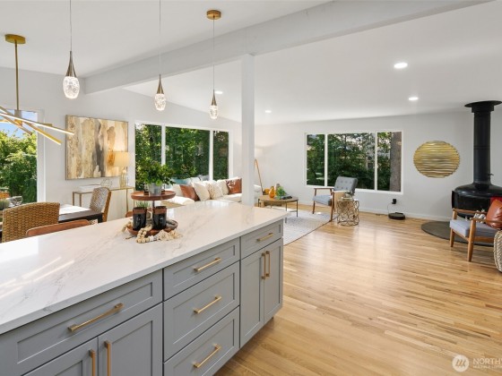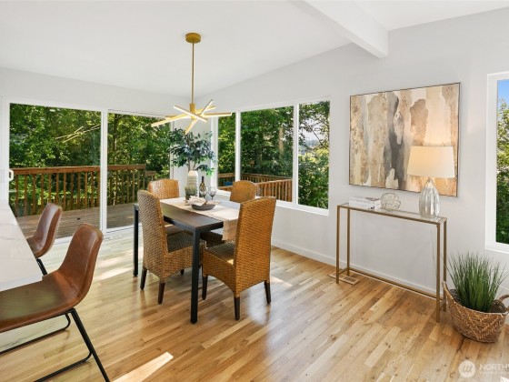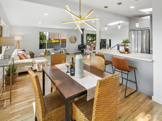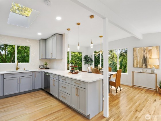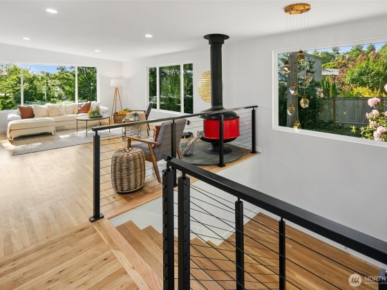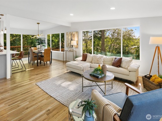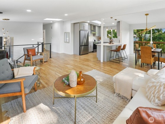 Welcome to this beautifully updated home on one of North Seattle’s coveted Healthy Streets! Surrounded by trees yet filled w/ abundant natural light, this thoughtfully renovated home shines w/ high-end finishes from top to bottom. Featuring 4 spacious bedrooms, incl. 2 luxurious primary suites, this home offers flexibility for guests or multi-generational living. An open floorplan w/ gorgeous hardwood floors, chef’s kitchen w/ designer inspired finishes, & dining area overlook a sunny back deck & expansive yard—perfect for relaxing or entertaining. Nestled in a peaceful, walkable neighborhood, yet blocks to trails, parks, beaches, shopping, restaurants, & schools. This home blends privacy, style, & convenience in one exceptional package.
