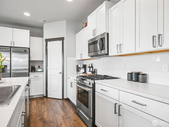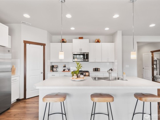 Amazing opportunity to enjoy a recently built home in a prime location! This home features 4 bedrooms, 2.5 bathrooms, and a dedicated office—offering all the space you need. High end upgraded flooring in the living area and staircase. The primary bedroom includes a spacious 5-piece bath with a walk-in closet. The kitchen and dining area open to a backyard with a covered patio and a valley view, perfect for outdoor entertaining. The neighborhood offers great amenities, including walking paths, a playground, and a basketball court. Conveniently located just a short distance from the ferry and the freeway. Bookshelves and appliances stay!