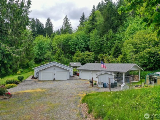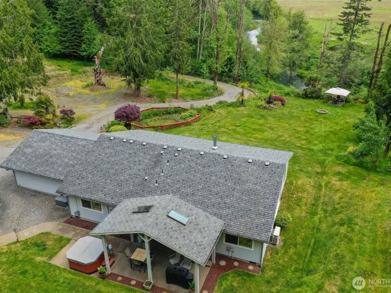 Riverfront 3-bed 1.75-bath home on 16 Acres- Shop, Pond, and Privacy Tucked along scenic State Route 507. 3 Parcels- 2nd parcel has river frontage, metal RV Cover, 2 bed septic & power already installed. Float the Skookumchuck River from Bucoda Park to your backyard. River frontage, private pond, mature landscaping & hot tub for relaxing evenings. The 2-car garage and detached 2-car garage/shop are perfect for toys, hobbies or storage. Inside enjoy granite countertops, ductless heating/cooling, cozy wood stove, updated PEX plumbing, Updated LVP Flooring, open floorpan and an automatic Honeywell generator. ATV Trails, wildlife and serenity from the comfort of your home. Fish, relax, or sip coffee surrounded by nature’s soundtrack.