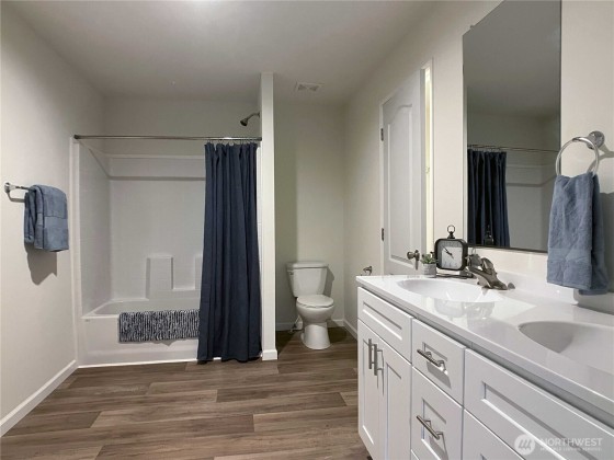 New home nestled in the trees on a half acre with peekaboo view of Hammersley Inlet! A short 500' walk takes you to Walker Park with public beach access, playground, picnic tables, and more. Kitchen boasts white shaker cabinets with soft close drawers and doors, quartz countertops, and SS appliances. Primary bedroom is on one side of the home with two bedrooms and full bathroom on the other side. The large deck on the front of the home is perfect for unwinding on summer evenings and enjoying the view!