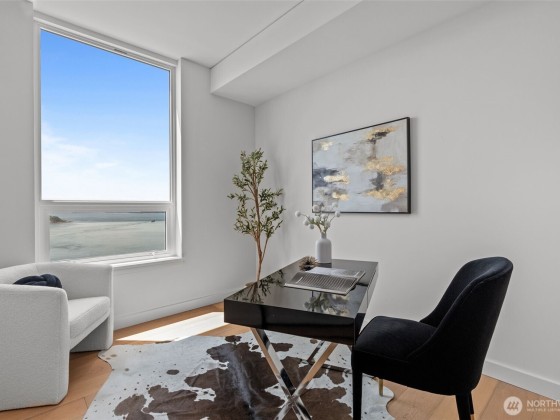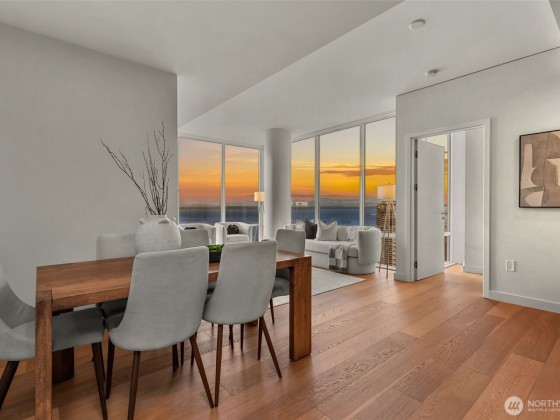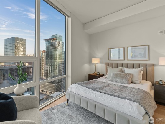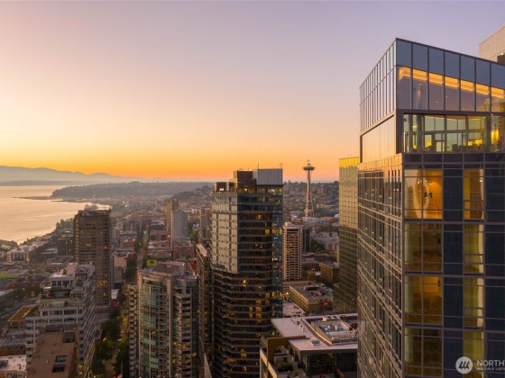 Welcome to this stunning NW corner home in The Emerald! First resale of desirable, first to sell-out plan, this 28th floor home provides unobstructed protected views of the Sound, Olympics, and Space Needle. Beautiful oak hardwood floors throughout, custom wood cabinetry, and floor to ceiling windows to take in those iconic PNW sunsets. Well designed floor plan provides two large bedrooms, corner primary suite w/ custom W/I closet, & en suite bath. Experience resort style living with state of the art fitness center, yoga studio, expansive roof top lounge w/ indoor and outdoor gathering spaces, pet run/spa, 24/7 concierge, and guest suite. One pkg space included included. One block from Pike Place Market, this inner city luxury escape is it!