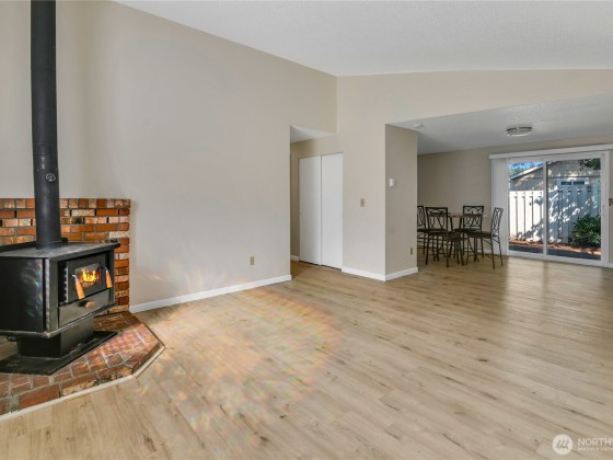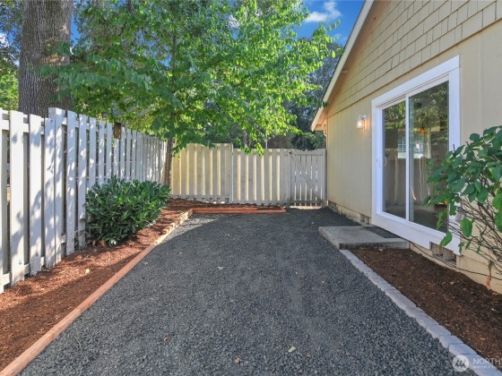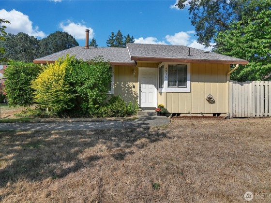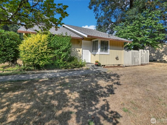 Charming & affordable home in The Cottages! Step inside to a spacious living room with vaulted ceilings and a cozy wood-burning stove. The convenient kitchen offers a breakfast bar, ample dining space, and all appliances included. Enjoy easy indoor-outdoor living with a sliding glass door that opens to a fully fenced, low-maintenance yard. Two comfortable bedrooms-one with a walk-in closet and the other with direct yard access-plus a large bathroom with in-home laundry. HOA maintains front yards, sidewalks, and parking for a carefree lifestyle. Fantastic location near Rainier Vista Park, golf, shopping, I-5, and JBLM