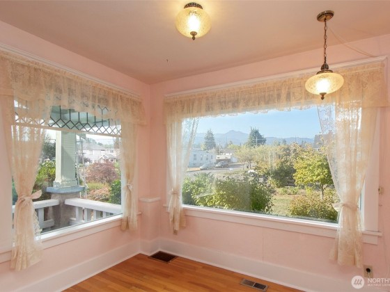 Charming Craftsman on a double corner lot with stunning mountain views and peek-a-boo water views! Features include oak floors, built-insthroughout, formal dining room with French doors, and a spacious kitchen with garden-view windows. Enjoy year-round comfort with a brandnew heat pump. Large back deck with hot tub, beautiful landscaping, 2-car detached garage, and a generous entryway closet add function and charm.Classic character meets modern comfort in this Port Angeles gem!