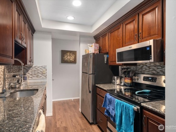 $30,000 Price Improvement! Light filled, top floor condo, with double-pane windows in the desirable Richmond Beach area! Outstanding Shoreline school district! Washer and Dryer in the unit! New Refrigerator. New Stove. New carpeting! Granite kitchen countertops. Primary bedroom with ensuite bathroom. Secure storage room on the balcony & an additional storage locker, located on the same floor! Clean inviting Pool! Light Rail nearby. A wonderful investment property; easy to rent with no rental cap! Stroll to the nearby Richmond Beach Saltwater Park, featuring a mile-long shoreline on Puget Sound with views of the Olympic Mountains. Walk to the convenient QFC grocery store or decompress at the beautiful, Hillwood Park & dog park! Pets ok.