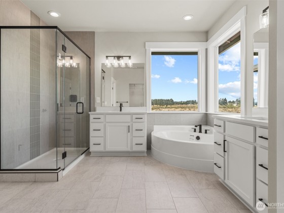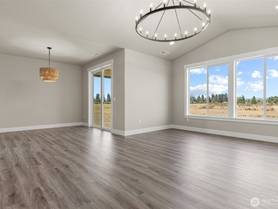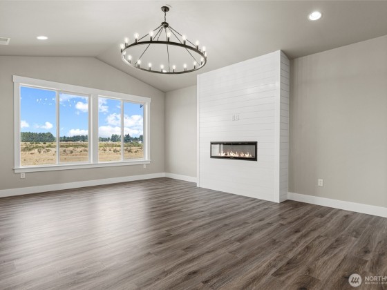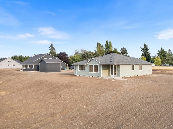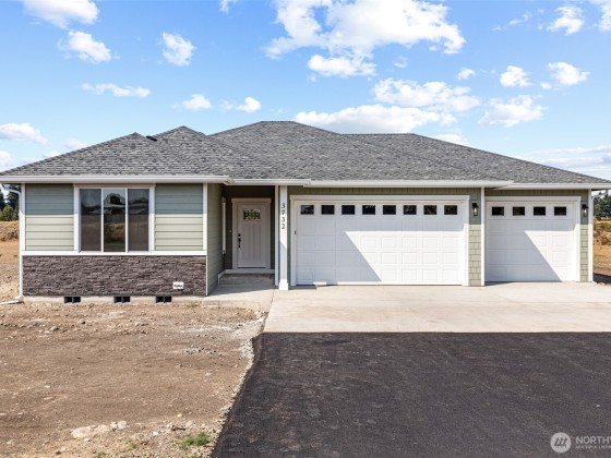 Move in Ready, Fabulous Brand New Tenino Rambler situated on nearly 5 acres surrounded by beautiful pastureland, horses, peace & tranquility plus Mt. Rainier & territorial views. Open concept floor plan, vaulted ceilings, durable LVP flooring & a sleek linear fireplace. Impressive designer Chef’s kitchen w/quartz countertops, stainless appliances, a spacious island, ample cabinetry & walk-in pantry. The light & bright dining area opens to a covered outdoor living space. French doors lead to a luxurious primary suite w/5-piece bath, oversized tile shower, soaking tub & walk-in closet. 3-car fully insulated garage, energy-efficient heat pump w/A/C & high-end finishes throughout—perfect for entertaining, working from home or simply relaxing.