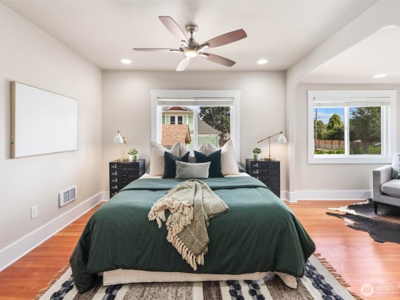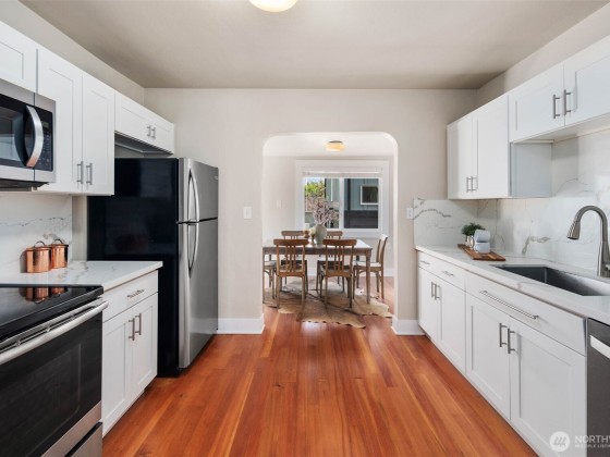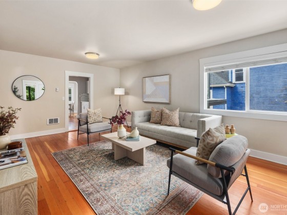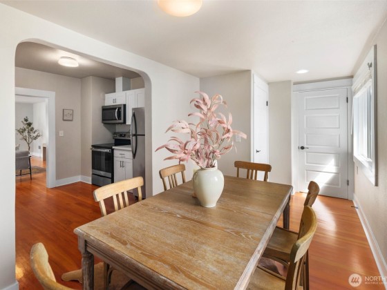 **3% Buyer Bonus towards Buydown or Closing Costs.** SFR or Duplex living. What a find in this updated charmer on a quiet tree-lined street. Beautiful & pristine hardwood floors, arched doorways, and classic 2bed/1bath floor plan on the main level. Updated kitchen with quartz counters, newer cabinets, and bright dining room. Upper level laundry. Finished lower level with full kitchen, 3 bedrooms, and 2 additional bathrooms. Ceiling height below standard height; ideal for smaller stature. Or reconnect interior stairs. Newer roof, siding, sewer line...all hard work has been done. Steps from rejuvenated park & community center, minutes to 509 & Boeing, easy access to Downtown Seattle & SeaTac. Multiple transit routes—making commuting a breeze.