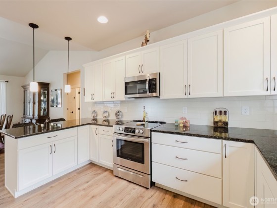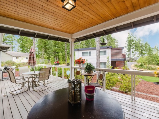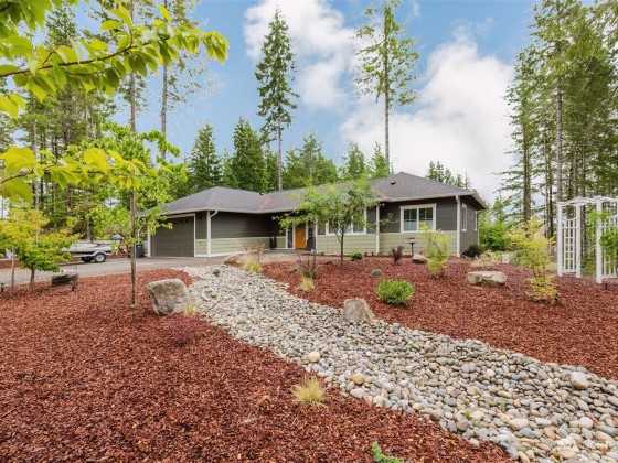 BOM - Buyer financing failed. ASSUMABLE 3.75% LOAN! Perched above Hood Canal in a peaceful neighborhood, this light-filled home offers comfort, style, and turn-key convenience. The open-concept features granite countertops, laminate flooring, and spacious eating bar flowing seamlessly into the dining and living areas—perfect for entertaining. Stay cozy year-round with heating, air conditioning, and a gas fireplace. Step outside to a beautifully landscaped yard with a deck that is ideal for outdoor gatherings. There is a two car garage and large driveway perfect for extra parking, an RV and/or boat. The HOA includes unlimited golf, clubhouse, park, pickleball, tennis, playground, dog park, trails, pool, spa & more.