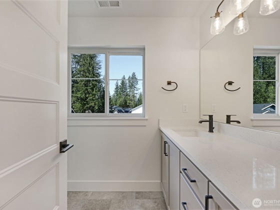 Welcome to Big Deer WEST, Homesite 2 perched like a treehouse, showcasing the surrounding nature out every window. Featuring upgraded LVP floors, a 36" gas range, EV charging, a Spa-like primary bath, large bedrooms, and timeless designer finishes. Enjoy the airy feel of high ceilings, the coziness of covered outdoor living, a dedicated home office with French doors, and built-in shelving in the spacious primary closet. Over 2 acres of woods to explore, large windows, tons of natural light, and a thoughtful design great for hosting make this a standout. Within 5 miles of downtown Snohomish, SR2, HWY 9, golf and water recreation. For the buyer desiring serenity and low maintenance living, looking to spread out, work and play, you're home!
