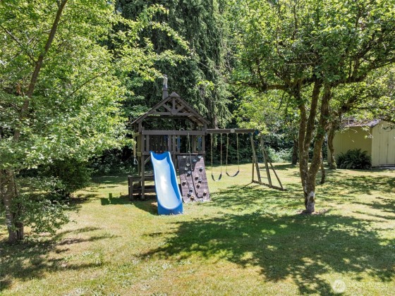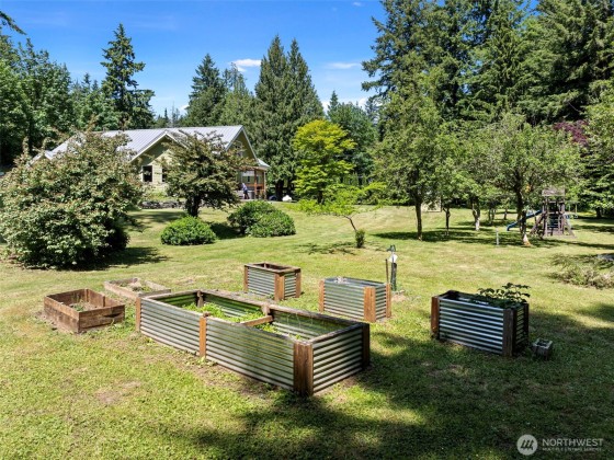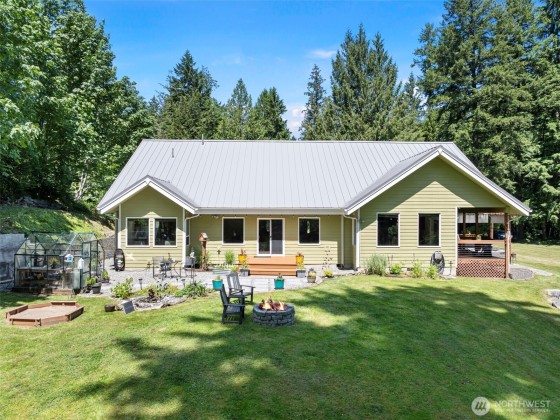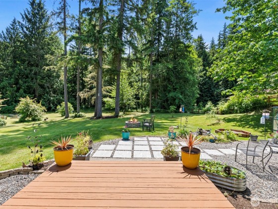 On 2.41 acres of beautifully landscaped grounds, this SIP-constructed custom home offers privacy, efficiency, and quality throughout. A 3 bed, 2.5 bath, office, and oversized bonus room layout is complemented by radiant floor heat, Daikin mini-split system, remodeled primary bath, granite kitchen with stainless appliances, and a new 80-gallon Rheem heat pump water heater. Tesla L2 charger, generator-ready panel, gigabit fiber, and a premium lifetime metal roof complete the package. Enjoy fruit trees including apple, pear, plum, and cherry, plus blueberries, a vegetable garden, and wildlife from covered porches. Ideally situated between Kingston and Bainbridge ferry terminals.