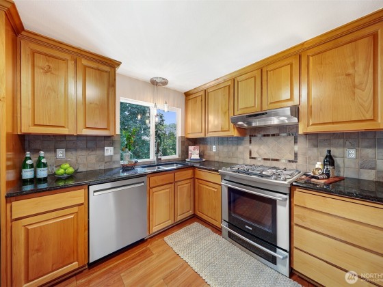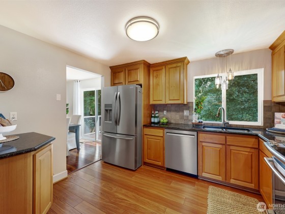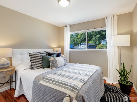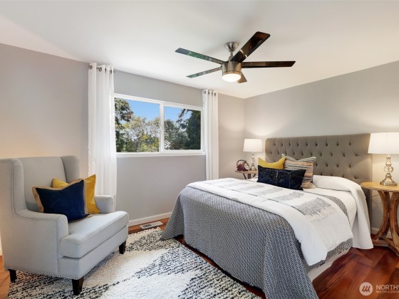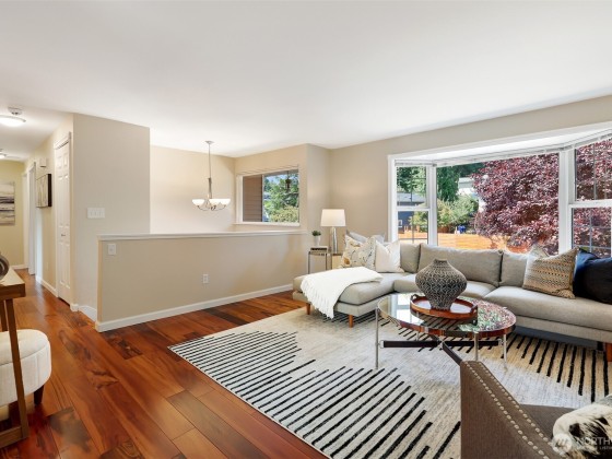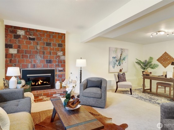 Beautifully updated & move-in ready, this Lynnwood gem offers stylish comfort & everyday convenience. Enjoy gorgeous Brazilian Koa engineered hardwoods, a fully remodeled kitchen with modern finishes, & beautifully remodeled baths that include radiant heat downstairs. Two spacious living areas each feature cozy gas fireplaces, with an additional downstairs room perfect for home office or guest bedroom. Stay comfortable year-round with 2024 installed central AC. Outside, a sunny upper deck, expansive lower patio, & vibrant mature gardens create a true outdoor oasis for gardeners & entertainers alike - & fully fenced as well! Close to transit, top-rated grocery, restaurants, & shops - this home has it all. Even a brand new roof! Welcome home.