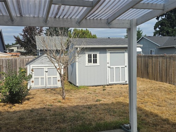 Discover the perfect blend of comfort and conveneience in this charming 4 bedroom home, in a great location. EZ commute to JBLM, close to shopping, entertainment, dining and recreation. Step inside to an inviting home with beautiful hardwoods that flow throughout the main living areas. Kitchen is open to the family room and dining. Lovely breakfast nook, and walk in pantry complete this functional kitchen. The primary bedroom is spacious and features a private bath. The additional 3 bedrooms are roomy and share a full guest bath. The soaring ceilings that invite you in to the home keep the spaces light and bright. Fully fenced backyard, fruit tree, 2 garden sheds covered patio, and 2 car garage. The location cannot be beat! Take a look!