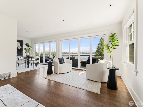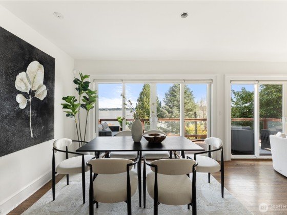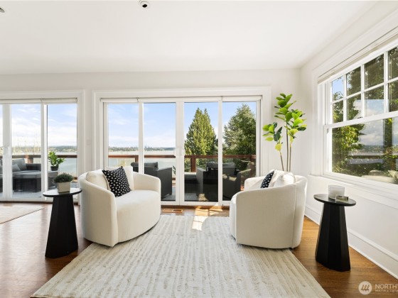 Welcome to the perfect blend of comfort and convenience in the sought after neighborhood of Leschi. You will encounter the most commanding views of the Blue Angels shows, Lake Washington, Mount Rainer, Cascade Mountains, and city of Bellevue in the neighborhood. This extensively remodeled home offers large open spaces to entertain guests with 180° water views from every room. Located in the end of a private street, enjoy privacy from next door neighbors while also being in walking distance of many restaurants, shops, Madrona park, lake Washington and more. House offers 3 floors of updated patio/ decks, a Full Mother in law with separate entry, ample parking on the street and a detached garage. This is a house you don't want to miss!