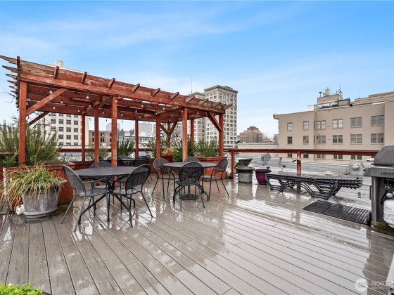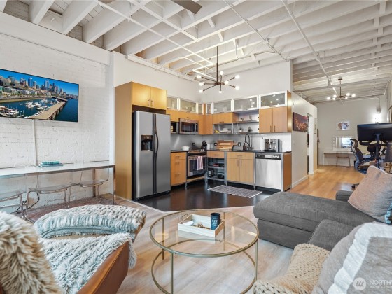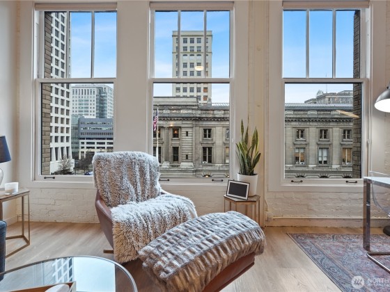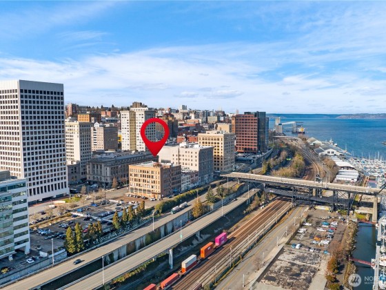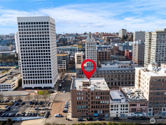 HEART OF HISTORIC DOWNTOWN TACOMA LIVING! 2nd lrgst plan in complex! Studio LIVES like 1 bed. Flexible living space, room for all needs. Find RARE luxury in unit with the new high end WASHER & DRYER situated perfectly in prmry closet. Expansive closet, enough room for 2! NEW vinyl plank floor brings bright &high end feeling. 14ft ceilings, ovrszd windows w/ immense natural light &city views! Modern industrial ktchn w/room for mobile island/or ktchn eating. Spend summer on the rooftop deck w/bbq, city, bay& Mtn views! Easy walking to food, waterfronts, parks, museums, transit &UW. Seconds to major fwys. Secure blding w/storage unit. ASK US ABOUT POTENTIAL SELLER PAID PARKING CREDIT!