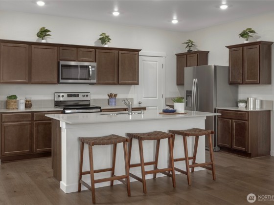 Welcome to Mason Heights in Federal Way. 2330 Sq. Ft. Corner Lot featuring 4Bed/2.5 Bath+ Loft. High 9' ceilings. You'll love the open concept living as you cozy around the gas fireplace for movie night or just to relax! Designer features such as Quartz counters throughout kitchen & bathrooms give an elegant touch. Luxury Vinyl Plank Flooring, White Painted Millwork & Doors, & Stainless Appliances along Covered rear patio with extended slab, Fenced & Landscaped Front & Rear Yards. EV charging in garage. Still time to for personalization of interior through the Design Studio to make this your unique & one-of-a-kind home. $20,000 incentive closing credit w/ KBHS Home Loans