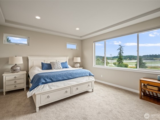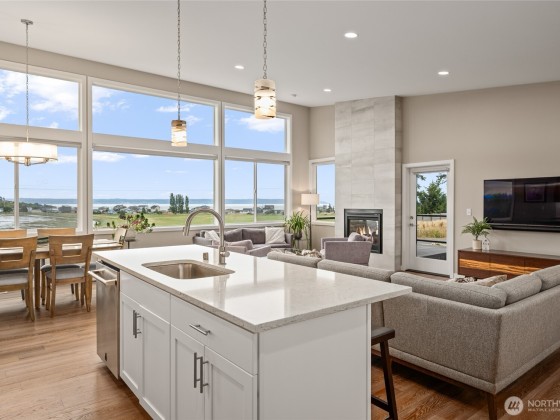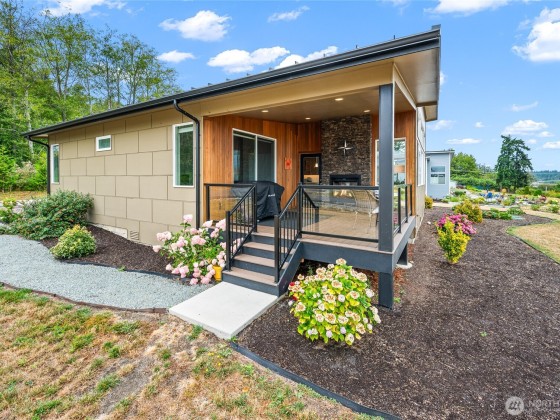 Indulge and experience luxury coastal living at this exquisite Camano Island beach retreat. Spanning 2,050 sq ft, this single-story masterpiece boasts 3 bedrooms and 2 baths, featuring a grand great room with panoramic ocean vistas, an open-concept design, and a mesmerizing see-through fireplace that elegantly warms both the living area and the expansive covered deck. The lavish primary suite promises unparalleled comfort and seclusion, all mere steps from your exclusive Driftwood Shores beach access. Embrace Camano Island’s refined coastal splendor! Revel in serene sunrises, pristine sands, and a lifestyle of elegance, with gourmet kitchens and lush gardens enhancing this seaside haven.