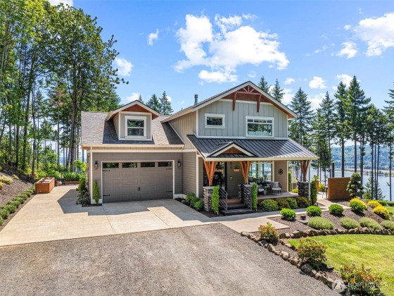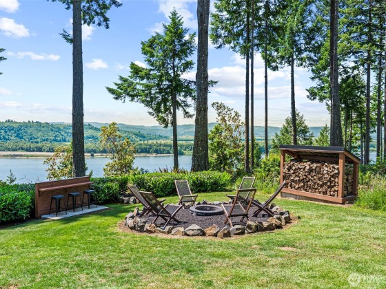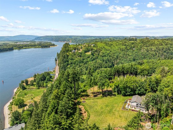Luxury meets Nature in this fully custom 2688 sq ft 3bd 3ba home, situated on secluded acreage with panoramic river views to see the ships go by. Every aspect of this home has custom and quality touches. Interior features include; stunning eat in kitchen w/island, spacious primary en-suite w/ view, office, Bonus room, in home sauna, electric sun shades, propane FP, surround sound, see-through staircase, and More! Outside you will enjoy a lush landscape, large patio, hard plumbed propane heaters/BBQ/FP, fixed lighting, hot tub, garden space, sprinklers, and fire pit all of which you can enjoy the view from. Also check out the fresh air balconies upstairs. Property has full RV hookups, backup generator, and outdoor shower. Sure to Impress!