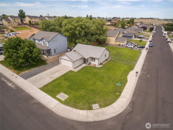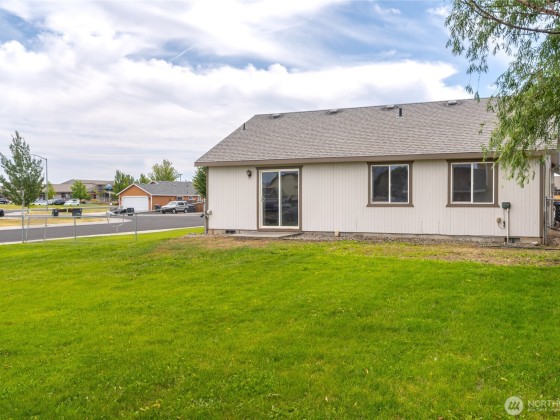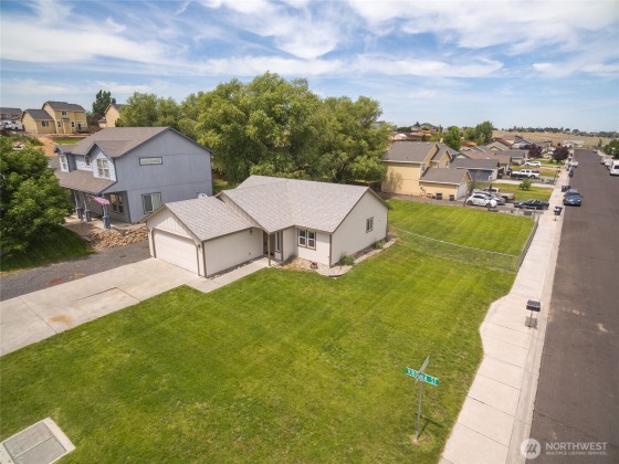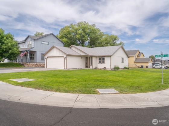 Affordable gem in Sage Vista. This move-in ready home is situated on a spacious corner lot with a fully fenced backyard, perfect for outdoor enjoyment. Featuring fresh interior and exterior paint, a light-filled open-concept layout, and durable flooring, this home offers comfort and style throughout. The kitchen flows into the dining and living areas, making it ideal for everyday living and entertaining. The slider opens up to the back patio, underground sprinkler system, and plenty of yard space add to the home's appeal. Conveniently located near schools, shopping, and parks, this property blends function, charm and location.