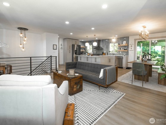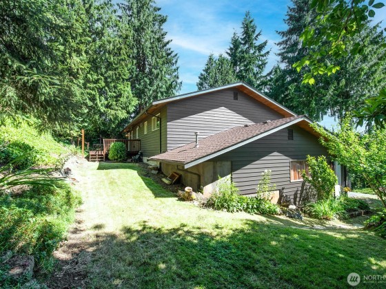 Stunning, like-new split-level on a serene park-like lot in Kenwanda. Fully renovated with timeless charm and modern style. Designer kitchen with shaker cabinets, quartz counters, and oversized island, envouge hardware and high-end stainless appliances flows to dining and chic living area with painted brick fireplace. Oversized windows showcase partial Snohomish Valley and Cascade views. Primary suite with updated bath, two more beds, & full updated guest bath. Flexible lower level offers stylish rec room w/w/built-ins, fireplace, 4th bed, half bath & laundry, storage/flex room, plus private entry, ideal MIL/guest suite. Tranquil yard, big deck, 2-car garage w/ shop, newer roof, new furnace/water heater, Snohomish schools, and HWY 9 access.