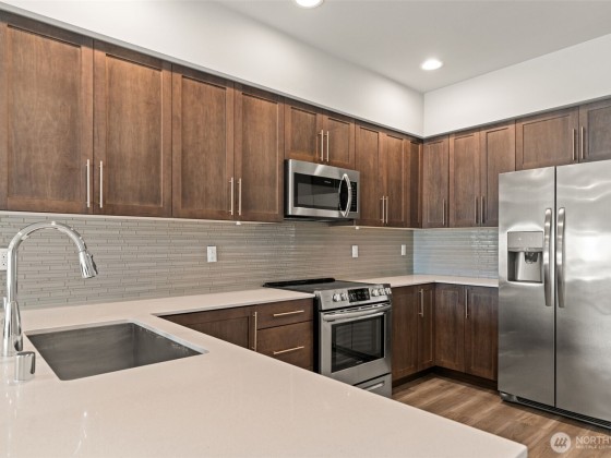 Offering 5K seller credits! Experience the feel of a brand-new home in this pristine 3 bed 2.75 bath move-in ready townhome located in the highly desirable Westlake neighborhood. Boasting a spacious open layout, it features a rare main-level bedroom with ¾ bath and two upstairs primary suites. Modern finishes include quartz kitchen countertops, stylish laminate flooring, and dual split AC for year-round comfort. Bedrooms are generously sized with large closets and abundant natural light. Comes fully equipped with all the appliances and blinds. The attached 2-car tandem garage offers ample parking and storage. No rental cap in a well-managed HOA. Prime location just minutes from Alderwood Mall, Lynnwood Transit Center, and Costco.