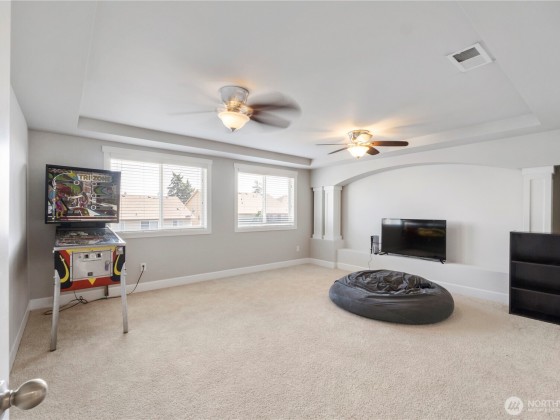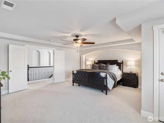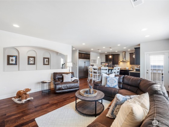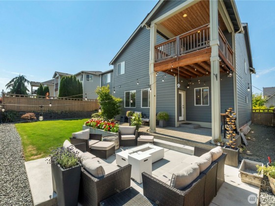 Stunning 4 bedroom 3 bath home in the highly sought-after Puyallup Highlands! Step inside to soaring natural light, custom millwork, arched entryways, and craftsman built-ins framing a modern gas fireplace. The open floor plan centers around a jaw-dropping chef’s kitchen featuring quartz countertops, shaker cabinets, custom oversized island, and professional-grade double fridge/freezer. A private office/optional 5th bedroom completes the main floor. Upstairs, retreat to a luxurious master suite w/ sitting area, spa-like 5-piece bath, walk-in closet & private covered balcony. Three more bedrooms, full bath and massive bonus room provide space for everyone. Enjoy a fully fenced, professionally landscaped backyard—perfect for entertaining!