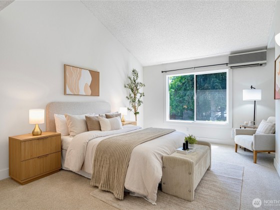 Welcome to Sandpointer Condominiums in the highly sought-after View Ridge neighborhood! This spacious unit features large rooms, soaring vaulted ceilings, abundant windows, and plenty of storage. Enjoy your sunny, private deck with garden views and an attached storage closet. The expansive primary bedroom offers comfort and space. Community amenities include a beautiful outdoor pool, sundeck, clubhouse, and top-rated tennis court. Dedicated covered parking and ample guest parking. No rental cap. Prime location near Children's Hospital, UW, Magnuson Park, and U-Village—perfect for homeowners or investors!