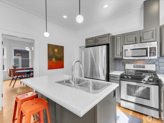 This updated American Foursquare merges Craftsman charm with modern upgrades. Three floors feature high ceilings and large windows for a bright, airy feel. Recent improvements include a new foundation, updated plumbing/electrical, and Nest-zoned climate control with central A/C. A private, soundproofed mother-in-law suite is perfect for guests or rental income. Enjoy front-facing bedrooms with acoustic windows, tandem parking for two, an updated kitchen, and a rare main-floor bathroom. Located one block from light rail and a year-round farmers’ market in Capitol Hill. Architect-owned, timeless, and move-in ready. MR (M1) zoning. Neighboring property, 115 11th Ave E (MLS #2426647) for sale. Significant development value if purchased together
