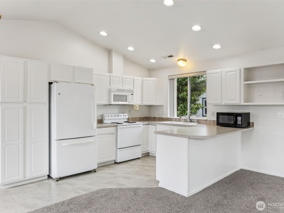 Charming 2-bedroom, 2-bathroom home situated on a desirable corner lot just minutes from town. This move-in ready property features a spacious 2-car garage, brand new carpet throughout, and a flexible layout designed for comfort and functionality. The upper-level primary bedroom includes a kitchenette, offering potential for extended living, guest quarters, or multi-generational living (buyer to verify). Large windows invite natural light, and well-sized rooms provide plenty of space to relax or entertain. Enjoy being conveniently located near shopping, dining, schools, parks, and everyday amenities. A great opportunity to own this great home in a prime location with room to personalize and enjoy.