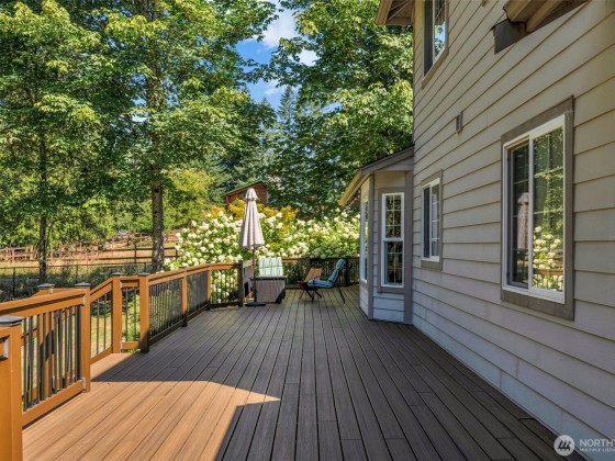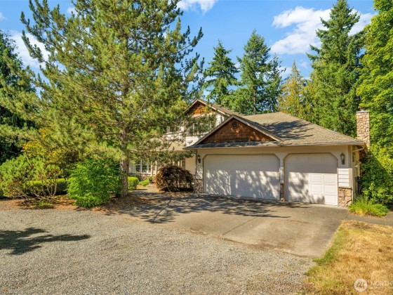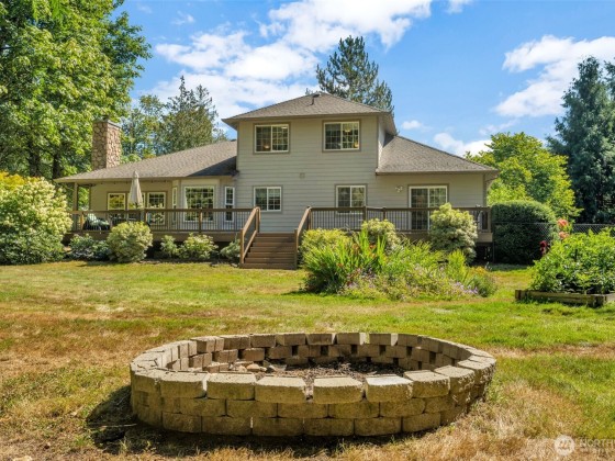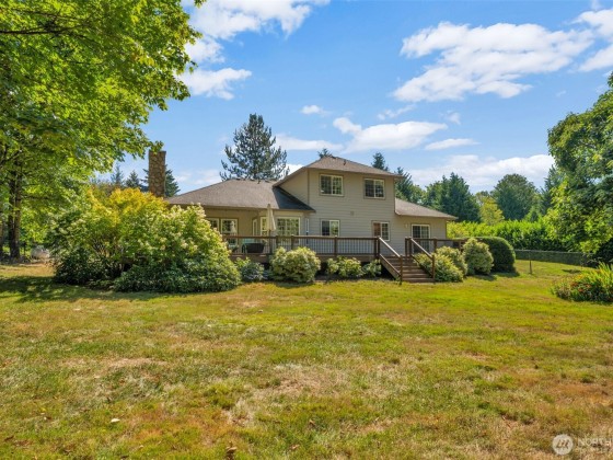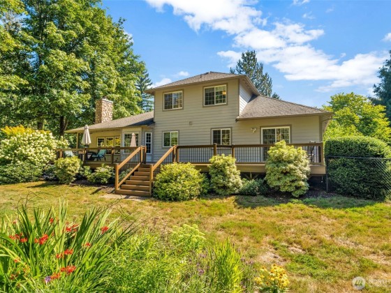 Stunning custom home on a quiet private road, set on over an acre! This 4 bed, 2.5 bath home with office and den offers 2,450 sq ft of well designed living space. The chef’s kitchen opens to a spacious living room with a river rock fireplace and abundant natural light. Main floor primary suite features a walk in closet, 5 piece bath, and deck access, perfect for morning coffee. Upstairs you'll find 3 additional bedrooms (1 non-conforming) and a full bath. Enjoy the expansive deck and fenced backyard, ideal for entertaining, gardening, or pets. A/C, generator, 3 car garage, RV/boat parking, and easy access to Hwy 18! Close to everything but feels miles away.