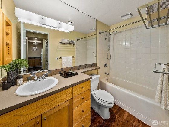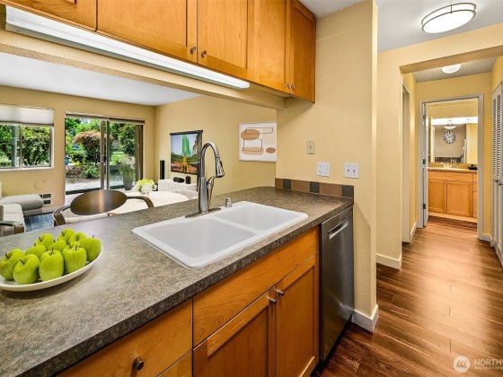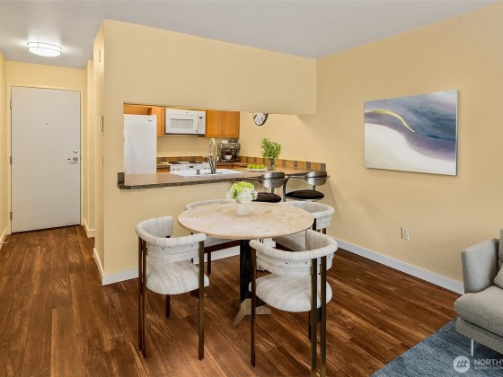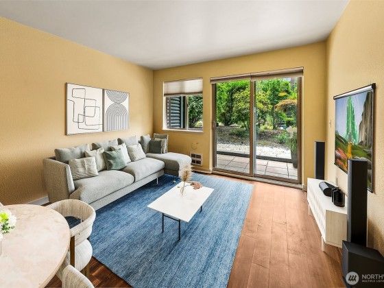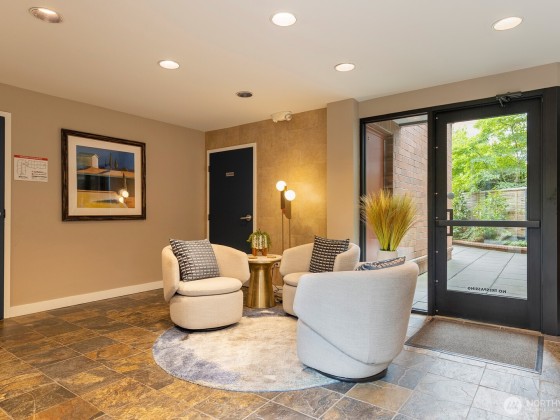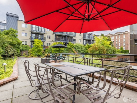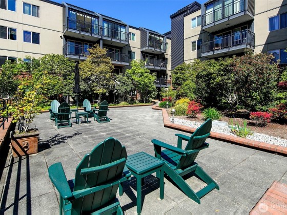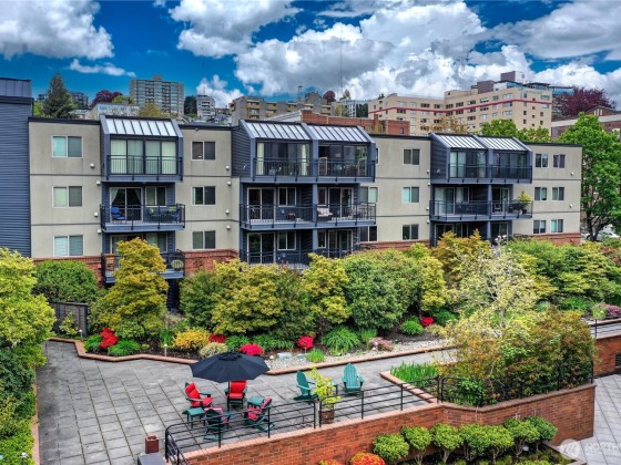 A hidden retreat, this off-street garden unit offers unmatched serenity in a prime urban setting. This south-facing gem features natural light and a freshly painted interior, a blank canvas just waiting for your personal touch. Near Seattle Center, you can embrace a walkable lifestyle or use the easy access to transit. Check out the nearby tennis courts or walk the trail to upper Kinnear Park. Located right off a bike route you have plenty of outdoor options. The heart of Queen Anne is just a short stroll away, allowing you to easily enjoy shops and restaurants while still having dedicated parking. This is a pet-friendly building and elevates your experience with a gym, lounge, grilling area, EV charging and bike storage.