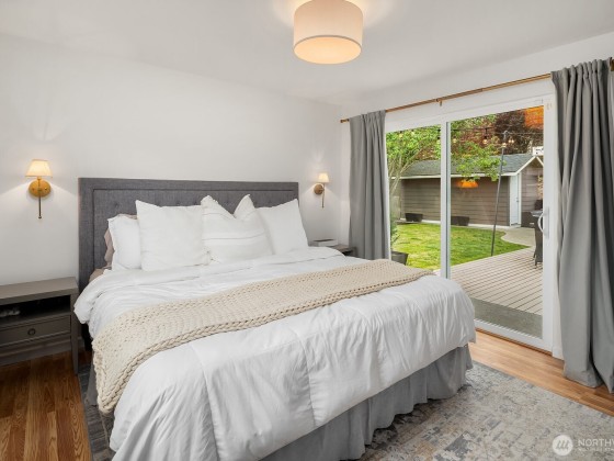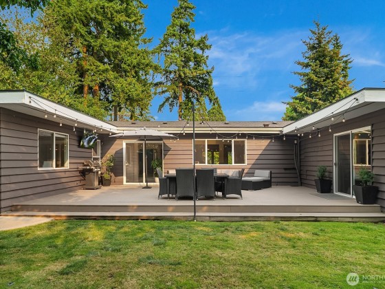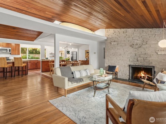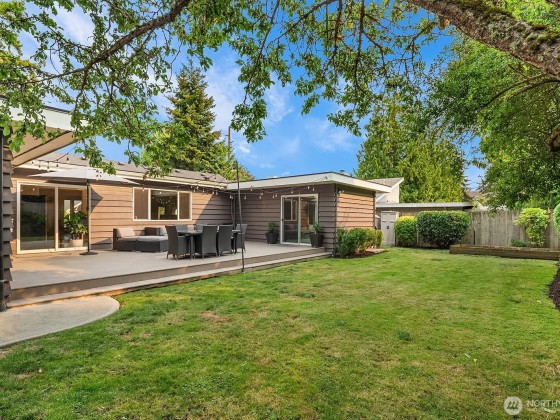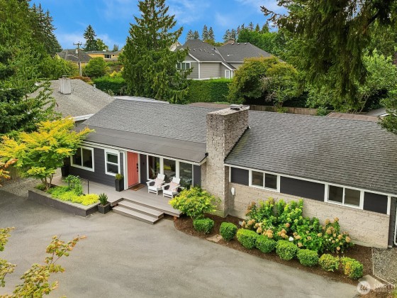Stylish West Bellevue rambler just blocks from world-class dining, shopping, & top-rated schools. Vaulted ceilings, a striking mid-century fireplace, & an updated kitchen w/ granite countertops, two refrigerators, & walk-in pantry set the stage for everyday ease. Designed for year-round entertaining, enjoy effortless flow from the kitchen & dining area to a generous deck & the quiet, flat, fenced backyard. Private primary suite occupies its own wing w/ direct deck access. A versatile family room, oversized detached storage, & off-street parking for 5+ vehicles. $50K seller credit for new flooring & upgrades to customize now or just move right in! Potential for rooftop deck w/ stunning Mt. Rainier views. Rare opportunity in a prime location!