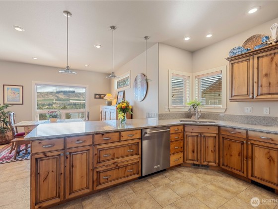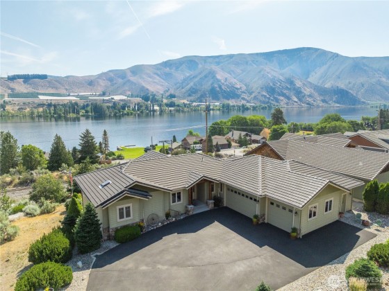 This impeccably maintained, one-owner home sits above the Columbia River in Entiat’s sought-after Shadow Ridge subdivision. Craftsman style, the exterior showcases log posts, wood soffits, & stone accents. Inside, the spacious kitchen features a gas range, quartz countertops, walk-in pantry, & tile flooring. The open layout offers views from nearly every room. The generous primary suite includes a walk-in closet, luxurious bath with in-floor heating, dual vanities, tiled shower & jetted tub. Enjoy the Trex deck off the main level or the covered patio below. The low-maintenance yard is beautifully landscaped w/irrigation & ample parking. Separate enclosed shop area. Residents enjoy HOA amenities: pool, cabana, & boat dock access. A must see!