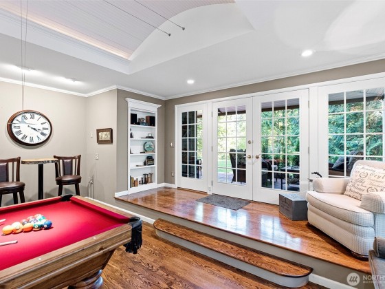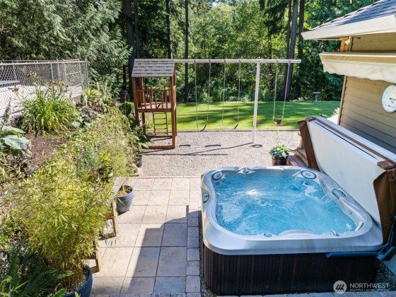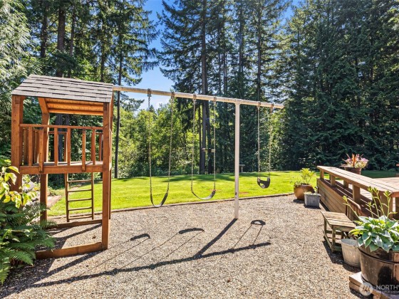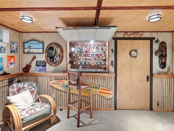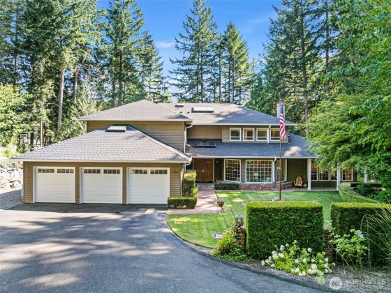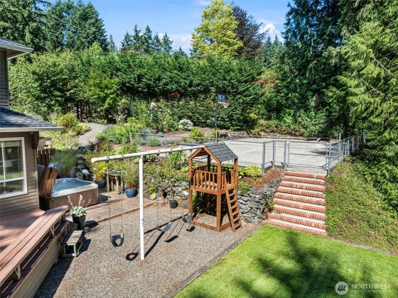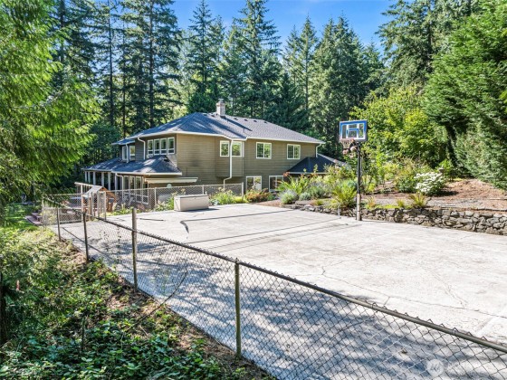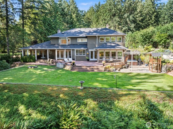 Discover your dream home in this stunning, beautifully updated, and meticulously maintained 4-bedroom custom residence, just minutes from Narrows Bridge yet offering a serene escape. The gourmet kitchen showcases Calcutta Gold marble countertops, Wolf and Subzero appliances, and custom white cabinetry, all set against elegant oak floors. Enjoy the spacious game room on the main floor and the luxurious primary bathroom featuring marble accents, a freestanding tub, and a no-door shower. Primary bedroom is a true retreat with a cozy fireplace and a relaxing sitting area. Experience a touch of aloha in the fun tiki-room on lower level. Expansive, partially covered south-facing deck provides the perfect spot to unwind! Vacant lot avail next door