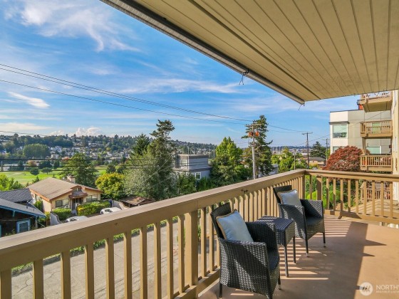 This spotless & spacious condominium shows beautifully. Enjoy lovely Puget Sound, golf course & territorial views as seen from the living rm & the spacious view deck. Grand living rm presents a classic, full brick mantled fireplace. Beautiful cook's kitchen shows SS appliances, granite counters & exceptionally attractive Shaker style cabinetry. Fully remodeled bath presents a stone tile flr & double vanity sinks. Both spacious bedrms present California Closets. New & beautiful hardwood flrs. Tons of natural light grace this hme! Exceptional storage inside the condo as well as an additional assigned storage unit. Deep 1 car garage plus an additional uncovered parking space. Washer & Dryer in unit! Community fitness rm, bike storage & shop!