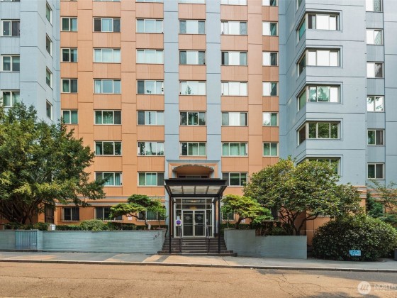 Updated SW facing corner unit with spectacular views of Seattle City skyline. Spacious open floor plan with remolded kitchen and bathroom, hardwood & tile floors. Many recent impressive upgrades including an opened-up kitchen looking onto the family room and Laundry in the unit. Deeded parking space in fully secure underground garage & storage. Ideal location. Steps away from restaurants, shops, theaters & nightlife. Dues include cable, water, heat, hot water, sewer, garbage & concierge. 2 roof top decks, rec room, guest suite, dog walk area. No rent restrictions.