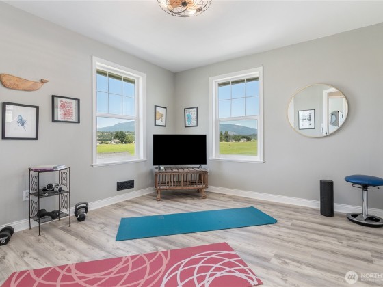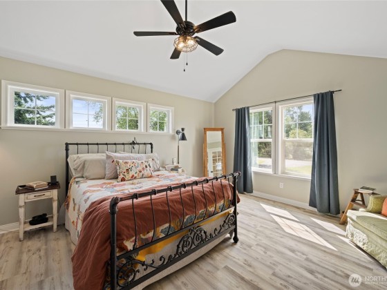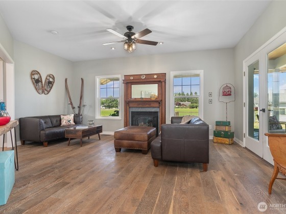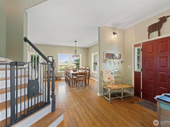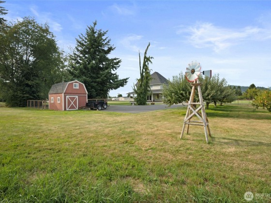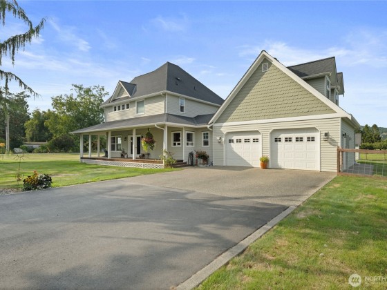 Stunning custom-built modern farmhouse with breathtaking views of the Cascades. Set on nearly 3 partially fenced acres, this spacious property is perfect for your dream mini farm. Enjoy an inviting wrap-around porch, perfect for soaking in the surrounding scenery. Inside, vaulted ceilings on both levels, french doors, and hardwood flooring on the main level including luxury vinyl flooring upstairs and fresh interior paint, make this home truly move-in ready. Above the garage, a studio/ADU with a private entrance great for rental income, or multi-generational living. A thriving orchard with apple, pear, plum, cherry trees, mini barn with chicken coop and room for small animals, completes this charming country retreat.