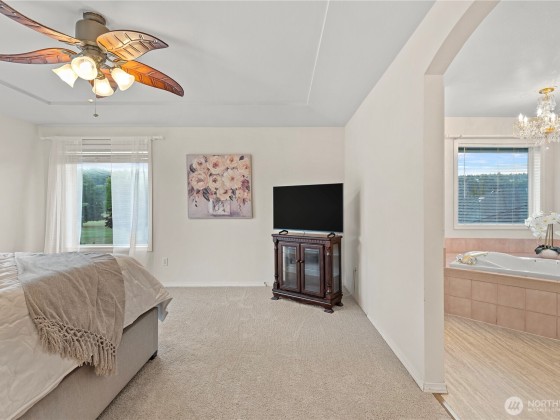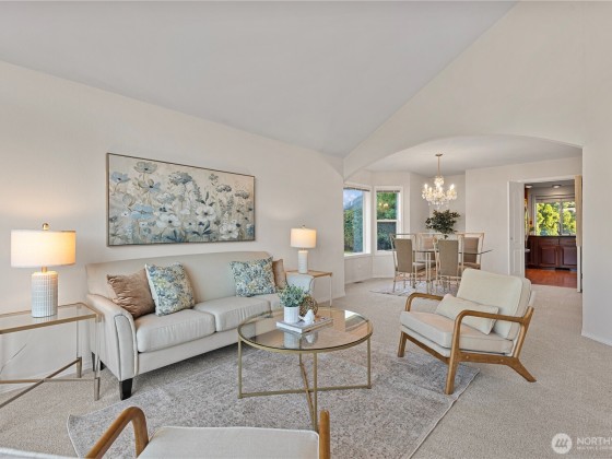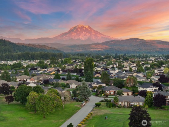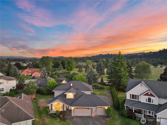 Envision waking up to Mount Rainier's majestic peak glistening in the distance and the manicured fairways of a championship golf course as your backyard. This isn't just a home; it's a lifestyle crafted for those who appreciate tranquility, breathtaking beauty, and the exhilarating pursuit of a beautiful game. Home features a brand new roof, new Central AC & furnace. New carpet, fresh interior & exterior paint for peace of mind and year round comfort. Whether entertaining friends or enjoying quiet evenings on your deck, this home blends comfort, convenience, and an unbeatable setting. A rare opportunity to live in a home that truly captures the beauty of the Pacific Northwest! Come see what High Cedar Golf living is all about.
