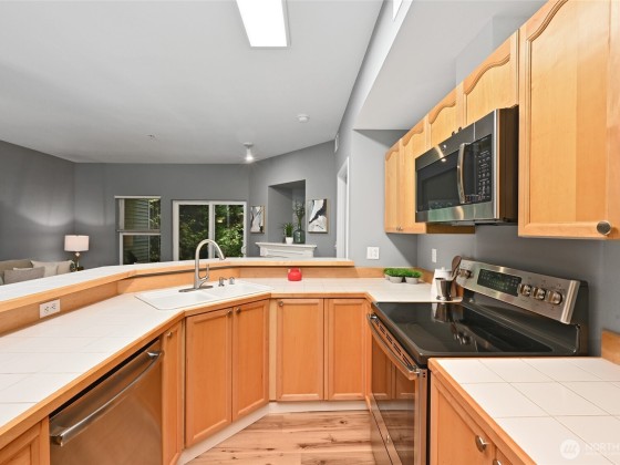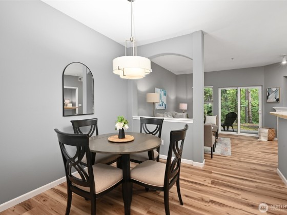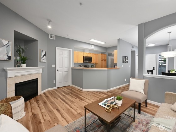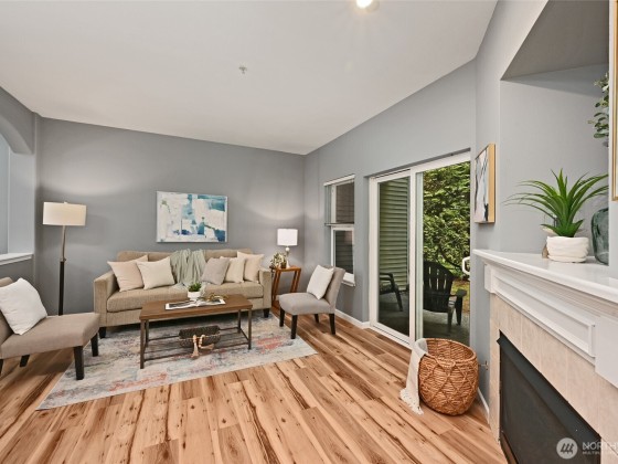 Wonderfully updated, 2 bed/1.75 bath, ground floor condo in desirable Woodinview. New floors, paint, 9 Ft ceilings, Maple kitchen cabinets, ample counter space with eating bar. Adjoining dining and living room with gas fireplace. Primary suite with large Walk-in closet, 3/4 bath. Includes all appliances, plus washer and dryer. Enjoy your next barbeque on the peaceful patio facing the greenbelt. Private garage, play area, sports court and Northshore School District. Great location near downtown Woodinville, Bothell, Totem Lake, wineries, Burke-Gilman and Sammamish River Trails. Easy access to highways and transit. Come make this gem your own!
