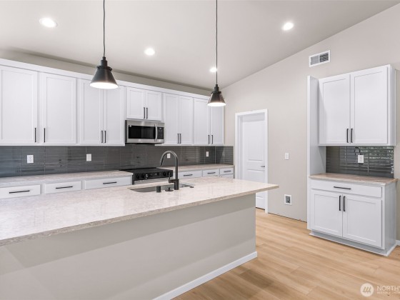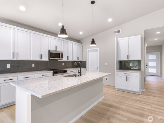Last chance for this Great Plan offered by MTT Homes. The 2194, Primary on Main, 4 Bed + office, has spacious Great Room featuring a large Island Kitchen with, stainless appliances, Quartz Counter tops, with Tile backsplash. Great room w/ fireplace. Dining area leads to outdoor, private covered patio. Primary bed on main, bath with Quartz counters, shower, walk-in large closet. Den or Office on main. 3 beds up and Loft up. Covered front porch, whole home forced air with A/C. Close to downtown Blaine and Canada for shopping, dining, golf, boating and all recreational activities. Special Finance options!