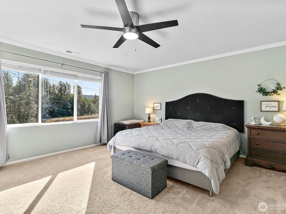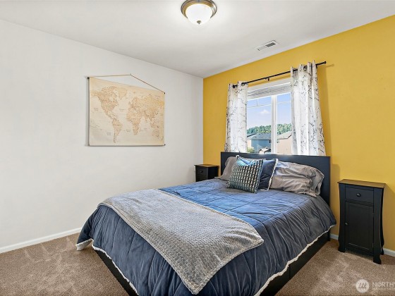 ASSUMABLE VA LOAN AT 3.5%!! Welcome to this beautiful, well layed out 5 bed, 2.75 bath home in the desirable Village Green community in Orting. In the kitchen you will find a large island with granite slab counters, stainless steel appliances and a large pantry. Main floor has spacious and open dining and living room, one bedroom, utility room, and bath. Upstairs, the oversized primary has a 5 piece bath and large walk in closet. Also 3 additional bedrooms, bonus room and full bathroom. Plenty of room for entertaining and gardening in the backyard with views of Mt Rainier. Through the gate, you will find trails and the river! Gazebo. Greenbelt for privacy. Close to shopping, golf, restaurants. Solar panels to keep your energy bills low.