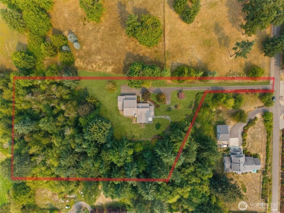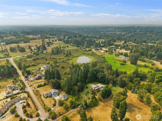 Beautiful custom home on 2.65 acres, surrounded by luxury estate-sized 5-acre lots, offering privacy with a blend of open space and greenery. This 2,900 SF home features 4 bedrooms, 3 bathrooms, a 2-car garage with attached shop. Vaulted cedar ceilings with hardwood floors and new carpet. The open kitchen includes an eating nook, built-in cabinets, and stainless appliances. South-facing windows fill the home with natural light. Enjoy formal and casual living spaces, a large covered deck ideal for entertaining, and a basement flex space with backyard access. Spacious primary suite offers a walk-in closet and en suite with built-ins. Includes gas fireplace, A/C, metal roof, and automatic generator. Peaceful country living near town!