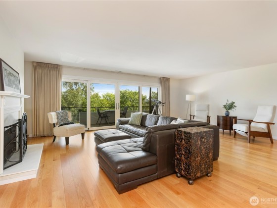 Don't miss this light-filled, boutique condo in the exceptionally well managed Carleton House. Featuring almost 2000sq ft on one level and an additional 300sq ft lanai with great views of Lake Union and the Cascades. The large, open living space features a wood burning fireplace and hardwood floors throughout the entire home. Special upgrades throughout incl A/C, 2 storage units (one of them 10x10) and 2 parking spots, making this Seattle condo unique and exceptional. From being near the 4th of July celebration at Gasworks Park to watching the Christmas ships float by from your balcony in the wintertime, this location cannot be beat and will give you some of Seattle's most iconic views throughout the year.