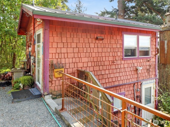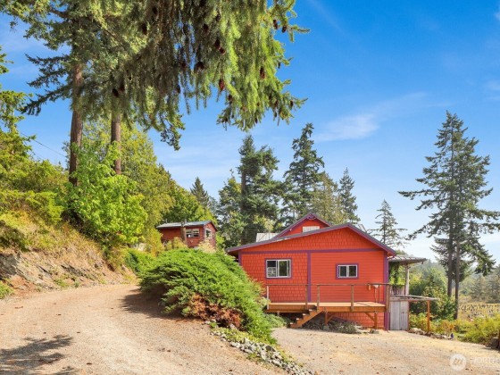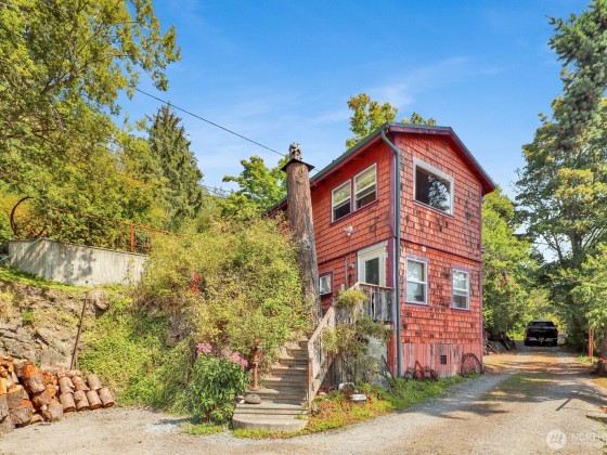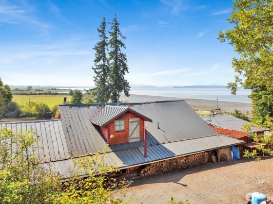 Rare opportunity to own a breathtaking piece of Chuckanut Drive with panoramic views of Skagit Bay and private waterfront access via the slough—perfect for launching a kayak or paddleboard right from your property. This 1.4-acre parcel is fully landscaped, gently sloping, and ready for your dream home. Live in the existing 1-bedroom residence while developing the lot. A historic 1888 structure—partially lost to fire 15 years ago—still stands, offering potential for new development. In 2011, the county approved two potential building sites: rebuild on the original footprint or elevate slightly for even better views. A 5-bedroom septic system and Blanchard Edison Water share already on-site. Iconic setting, unmatched opportunity.