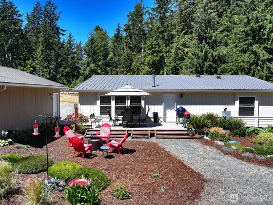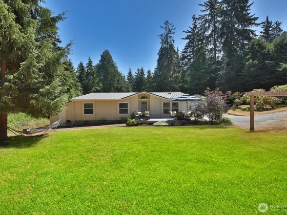 Welcome to your own private retreat. Views of wildlife and the quiet serenity of woods, with many varieties of birds, add to the enjoyment of this beautiful, well-maintained, 3-bedroom, 2-bath, spacious and light, open concept home. Situated on a level 2.4+ acres, this home offers privacy & quiet, but is also an entertainer's delight with large kitchen, counter seating and elegant dining area that flows seamlessly into the living area enhanced by a propane fireplace. This home does not disappoint. Welcome home to Whidbey!