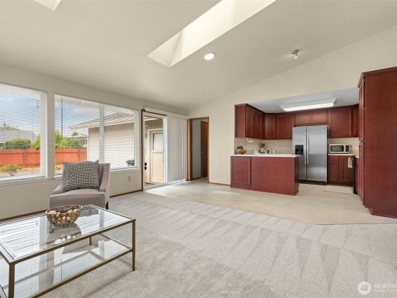 This 3-bedroom, 1.75-bath rambler in North Tacoma offers a thoughtful layout and a warm, comfortable feel throughout. The kitchen is the heart of the home, welcoming you in with space to cook, gather, and enjoy everyday moments. The open living and dining areas make it easy to host all the parties or relax at the end of the day. Each bedroom is well-sized, with the primary suite featuring its own private bath. Alley access to the garage adds convenience, and the location places you close to parks, schools, and local favorites. With plenty of room to grow and space for all the celebrations, this home is ready for whatever comes next. With brand new carpet and fresh interior paint, all we need is you!