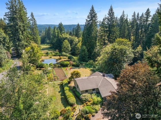 Welcome to Cherry Hill Farms, your private retreat nestled on over 18 acres of serene countryside in Duvall! Enjoy mountain views from this spacious 3,620 SF home. 4 BR and 3.25 BA, thoughtfully designed for comfort and versatility. The daylight basement adds extra living space, perfect for a media room, guest suite, hobby shop or potential ADU. Beautiful grounds with mature landscaping, garden, pond, fruit trees, and pastureland. Large shop with a greenhouse and chicken coop, plus a horse barn, and dog kennel. Ample parking for all of your toys. Enjoy the tranquil sounds of the creek. Whether you're dreaming of a peaceful lifestyle or a multi-generational estate, this home delivers space, privacy, and possibility.